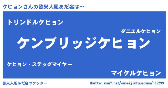 | 男性向けラノベタイトル風あだ名 | 『Re:ケヒョンから始める異世界生活』 |