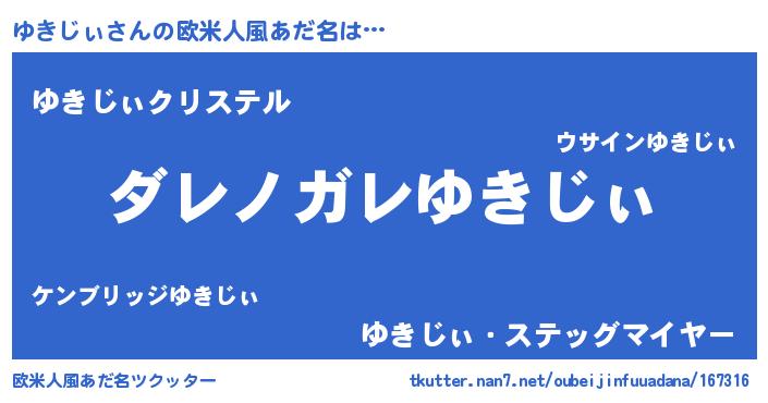 | 女子向けラノベタイトル風あだ名 | 『乙女ゲームの破滅フラグしかない悪役ゆきじぃに転生してしまった…』 |