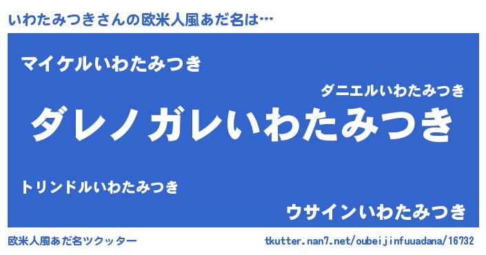 | 意味不明あだ名 | 『住所不定無職いわたみつき(56歳)』 |