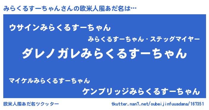 | 料理風あだ名 | 『みらくるすーちゃんのカルパッチョ風』 |