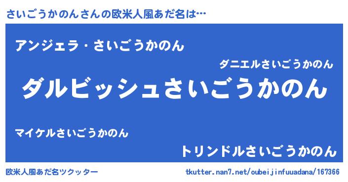 | ヘコむあだ名 | 『さいごうかのん(震え声)』『さいにー』 |