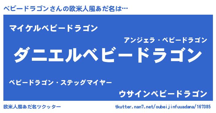 | 男性向けラノベタイトル風あだ名 | 『ノーゲーム・ノーベビードラゴン』 |