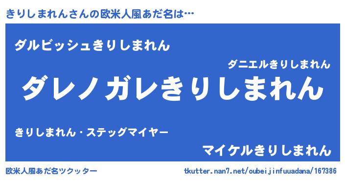 | ヘコむあだ名 | 『きりしまれん(爆)』『きりふぇ~』 |