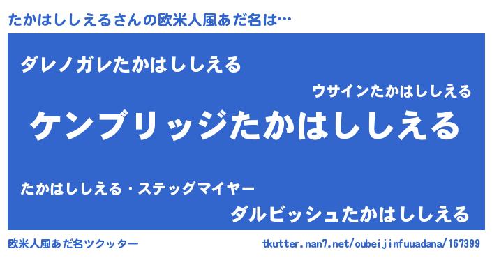 | 意味不明あだ名 | 『自称たかはししえる』 |