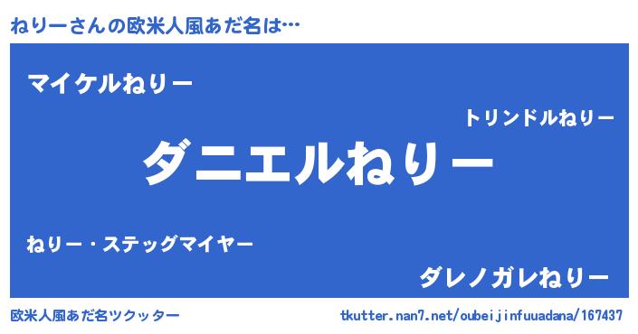 | 男性向けラノベタイトル風あだ名 | 『おまえをオタクにしてやるから、俺をねりーにしてくれ! 』 |