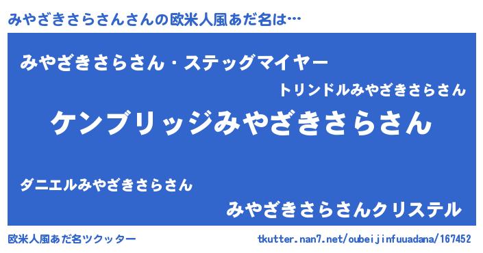 | 男性向けラノベタイトル風あだ名 | 『魔法科高校のみやざきさらさん』 |