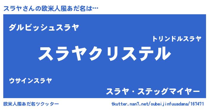 | 意味不明あだ名 | 『スラヤフォーエバー』『永久保存スラヤ』 |