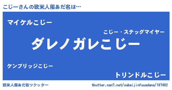| 意味不明あだ名 | 『住所不定無職こじー(77歳)』『自称こじー』 |