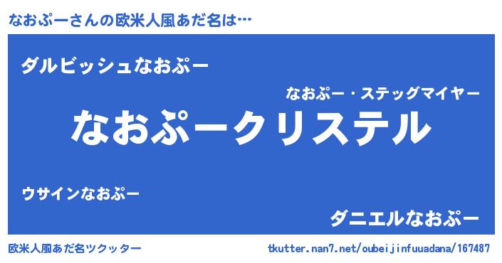 | ファンタジー風あだ名 | 『エターナルナオプーー』『クインナット』 |