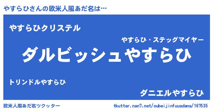 | ヘコむあだ名 | 『やすらひ(爆)』『牛乳』『やす太郎』 |