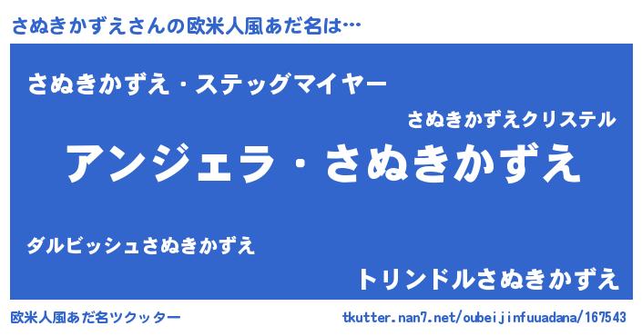 | 男性向けラノベタイトル風あだ名 | 『はたらくさぬきかずえさま!』 |