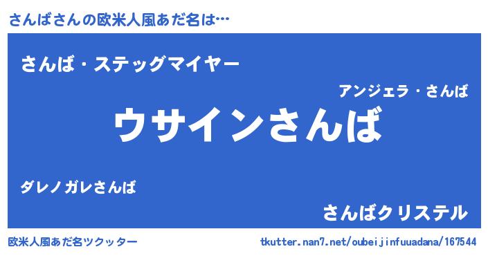 | 男性向けラノベタイトル風あだ名 | 『さんばの嫁は女の子じゃないと思った?』 |
