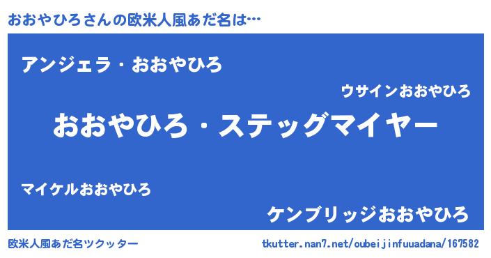 | 男性向けラノベタイトル風あだ名 | 『うちのおおやひろが世界を掌握している!』 |