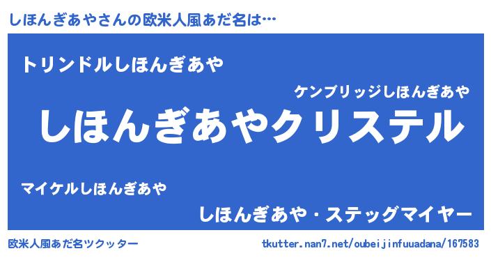 | 意味不明あだ名 | 『しほんぎあやフォーエバー』 |