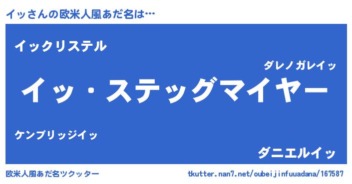 | 男性向けラノベタイトル風あだ名 | 『緋弾のイッ』『ノーゲーム・ノーイッ』 |