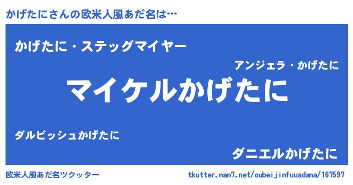 | 男性向けラノベタイトル風あだ名 | 『カゲタニアートオンライン』 |