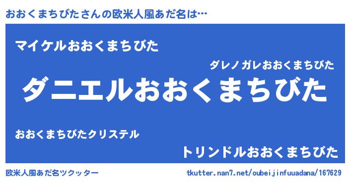 | 男性向けラノベタイトル風あだ名 | 『おまえをオタクにしてやるから、俺をおおくまちびたにしてくれ! 』 |