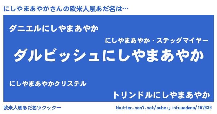 | 男性向けラノベタイトル風あだ名 | 『にしやまあやかという概念が存在しない退屈な世界 』 |