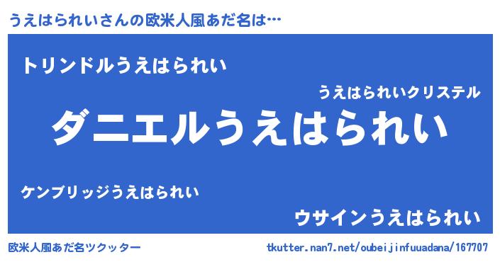 | 男性向けラノベタイトル風あだ名 | 『ノーゲーム・ノーウエハラレイ』 |
