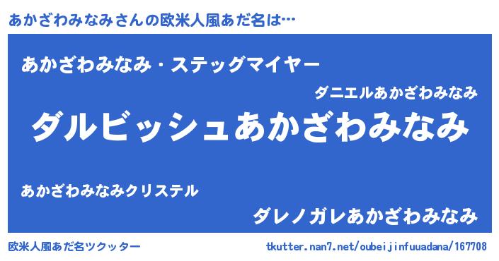 | 女子向けラノベタイトル風あだ名 | 『あかざわみなみの契約王妃』 |