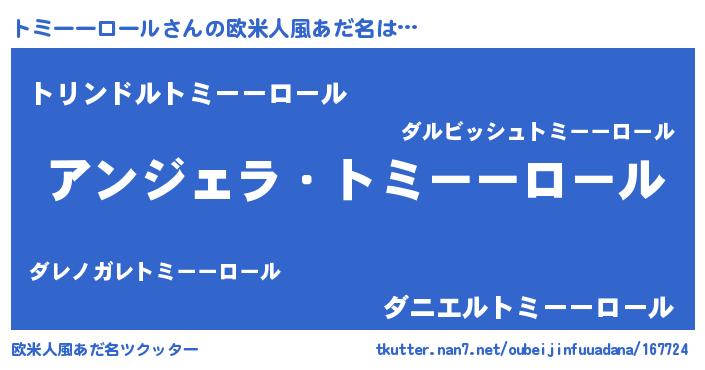 | 男性向けラノベタイトル風あだ名 | 『トミーーロールに滅ぼされるだけの簡単なお仕事です』 |