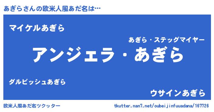| ヘコむあだ名 | 『あぎにー』『あぎを』『あぎら(笑)』 |