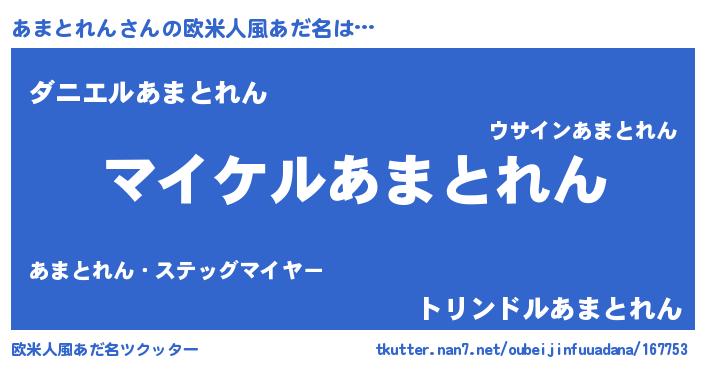 | 男性向けラノベタイトル風あだ名 | 『あまとれんの憂鬱』 |