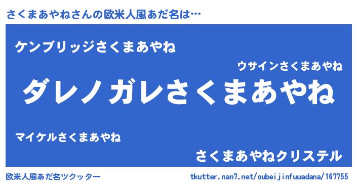 | 恥ずかしいあだ名 | 『サクマアヤネデラックス』『さくっちょ』 |