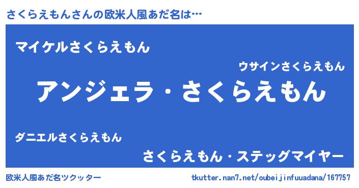 | 男性向けラノベタイトル風あだ名 | 『さくらえもんに滅ぼされるだけの簡単なお仕事です』 |