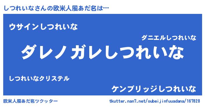 | ヘコむあだ名 | 『しつを』『レバニラ』『しつにー』 |