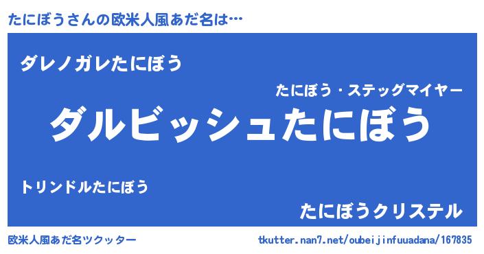 | ファンタジー風あだ名 | 『タニディッシュ』『ヴァルタニーナ』 |
