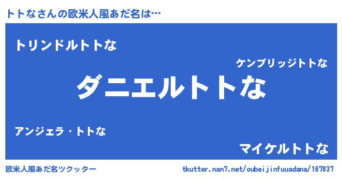 | ヘコむあだ名 | 『トトふぇ~』『トトな(笑)』 |