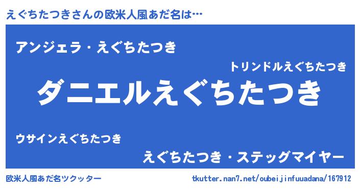 | 男性向けラノベタイトル風あだ名 | 『おまえをオタクにしてやるから、俺をえぐちたつきにしてくれ! 』 |