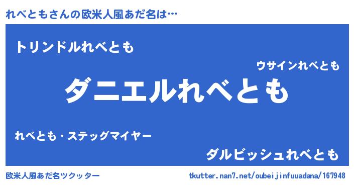 | ヘコむあだ名 | 『れべとも(苦笑)』『れべを』『豆乳』 |