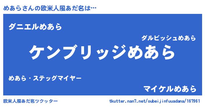 | ヘコむあだ名 | 『めあにゅー』『めあら(遠い目)』 |