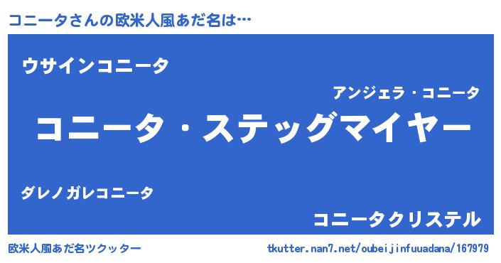 | 男性向けラノベタイトル風あだ名 | 『うちのコニータが世界を掌握している!』 |
