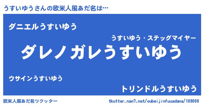 | 意味不明あだ名 | 『住所不定無職うすいゆう(8歳)』 |