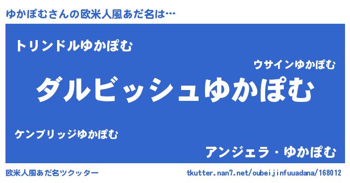 | 男性向けラノベタイトル風あだ名 | 『誰もが恐れるあのゆかぽむが、ぼくの専属メイドになるようです。』 |