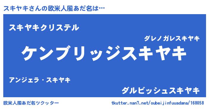 | 女子向けラノベタイトル風あだ名 | 『スキヤキなんてお断りですっ。』 |