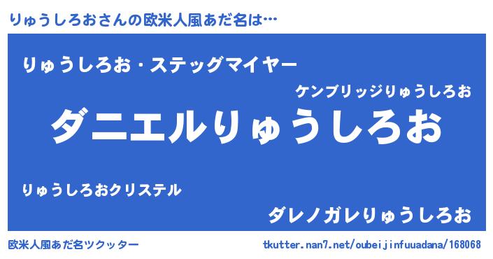 | 男性向けラノベタイトル風あだ名 | 『ノーゲーム・ノーリュウシロオ』 |