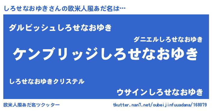 | 女子向けラノベタイトル風あだ名 | 『しろせなおゆきなんてお断りですっ。』 |