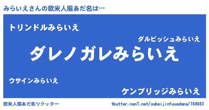 ポケモン風あだ名 | 『ミーライ』『ミラキング』 |