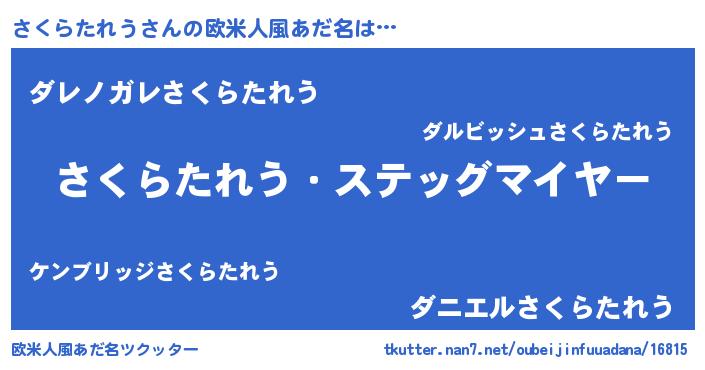 | ヘコむあだ名 | 『さくらたれう(笑)』『さくっぺ』 |