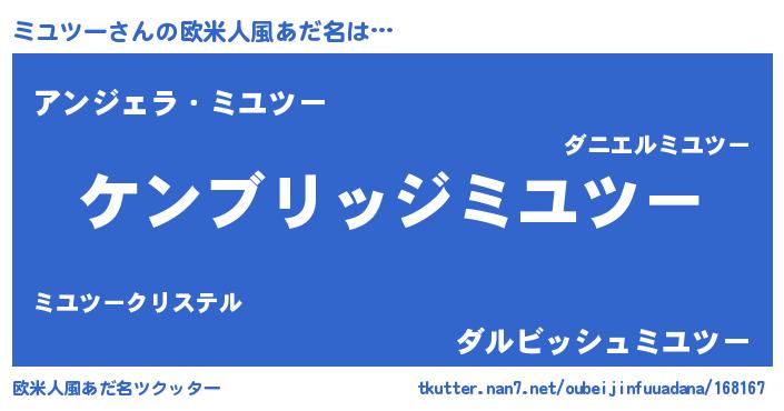 | ヘコむあだ名 | 『ミユツー(苦笑)』『豆乳』 |