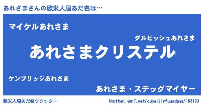 | ファンタジー風あだ名 | 『エターナルアレサマー』『アレフェル』 |