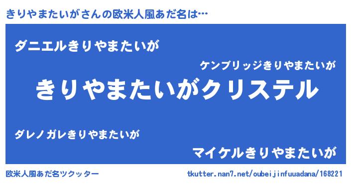 | 意味不明あだ名 | 『きりやまたいがフォーエバー』 |