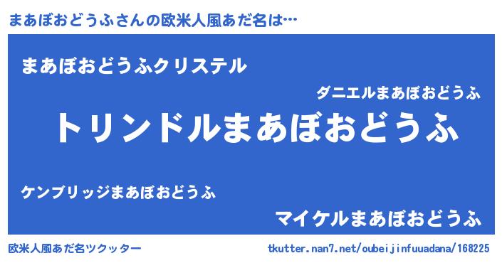 | 男性向けラノベタイトル風あだ名 | 『転生したらまあぼおどうふだった件』 |
