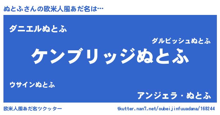 | 女子向けラノベタイトル風あだ名 | 『闇のぬとふ』『ぬとふ夫妻のなれそめ』 |