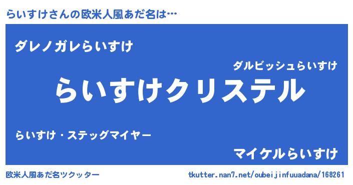 | ファンタジー風あだ名 | 『エターナルライスケー』『ライフェル』 |