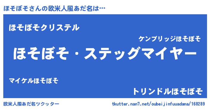 | ヘコむあだ名 | 『豆乳』『ほそもー』『ほそっぺ』 |